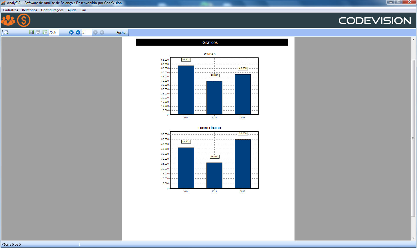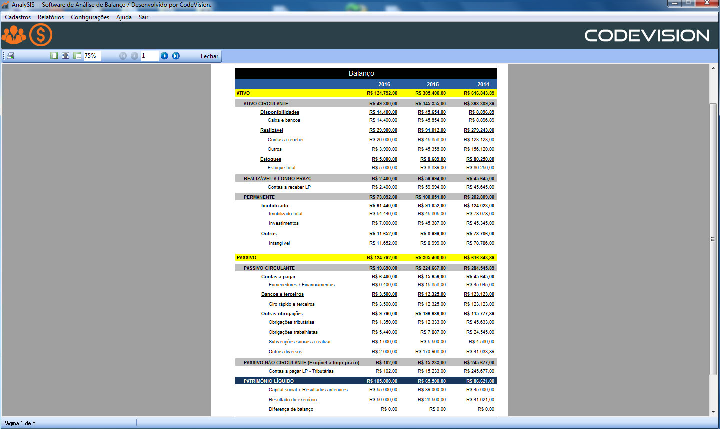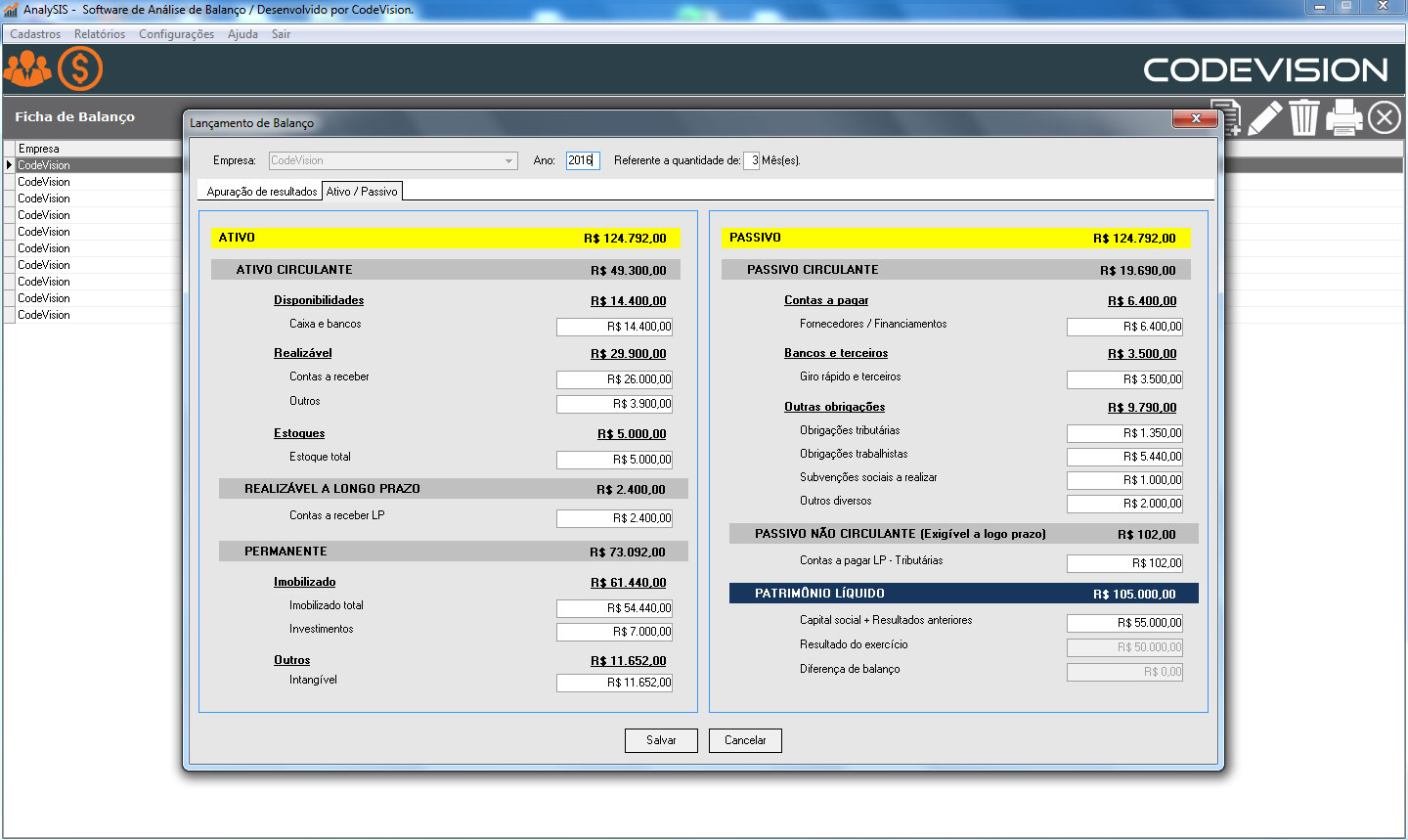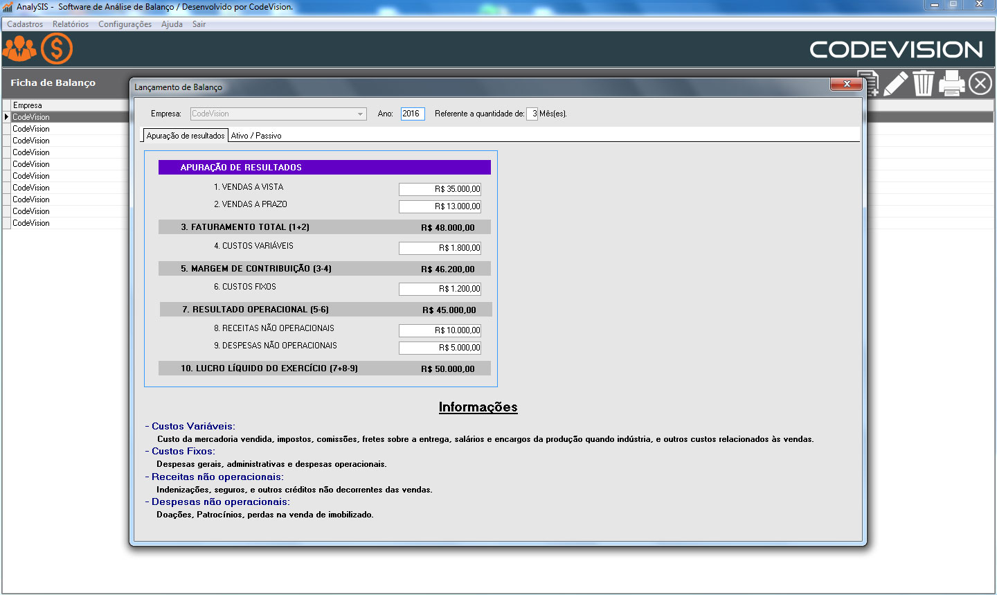 ANALYSIS permite visualização sistêmica e resumida da apuração de resultados e do balanço patrimonial, bem como indicadores, comparando a evolução ano a ano, além de demonstrações gráficas e cálculo do ponto de equilíbrio.