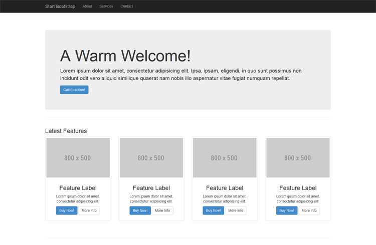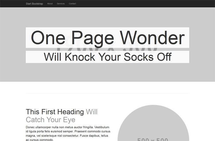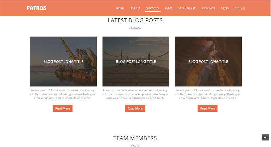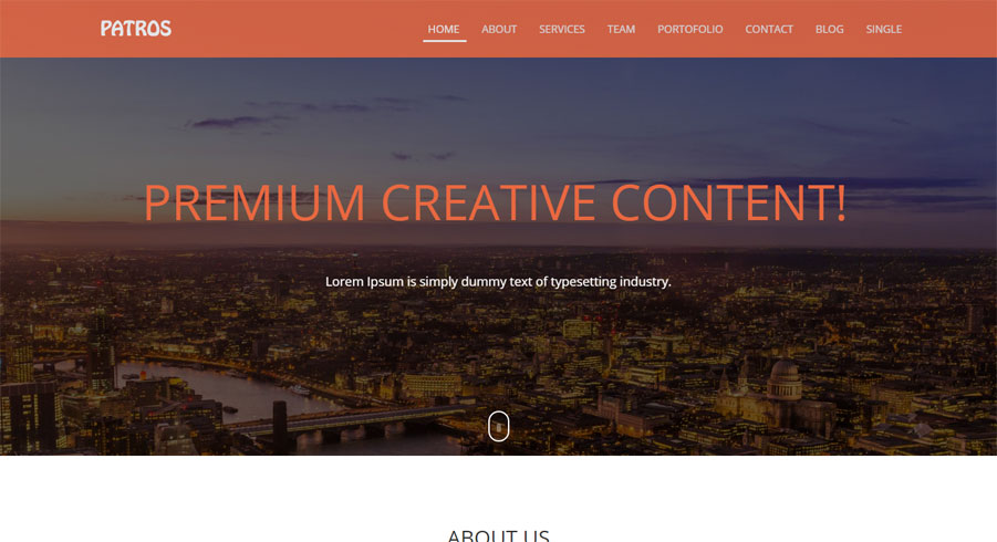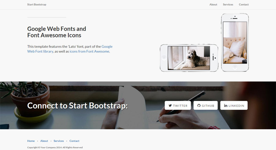 Template com imagem grande e menu no rodapé.