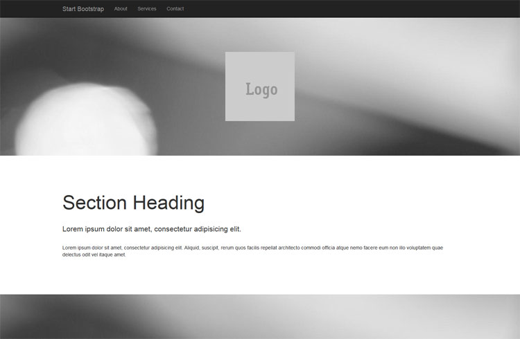 Página com imagem grande e menu superior.